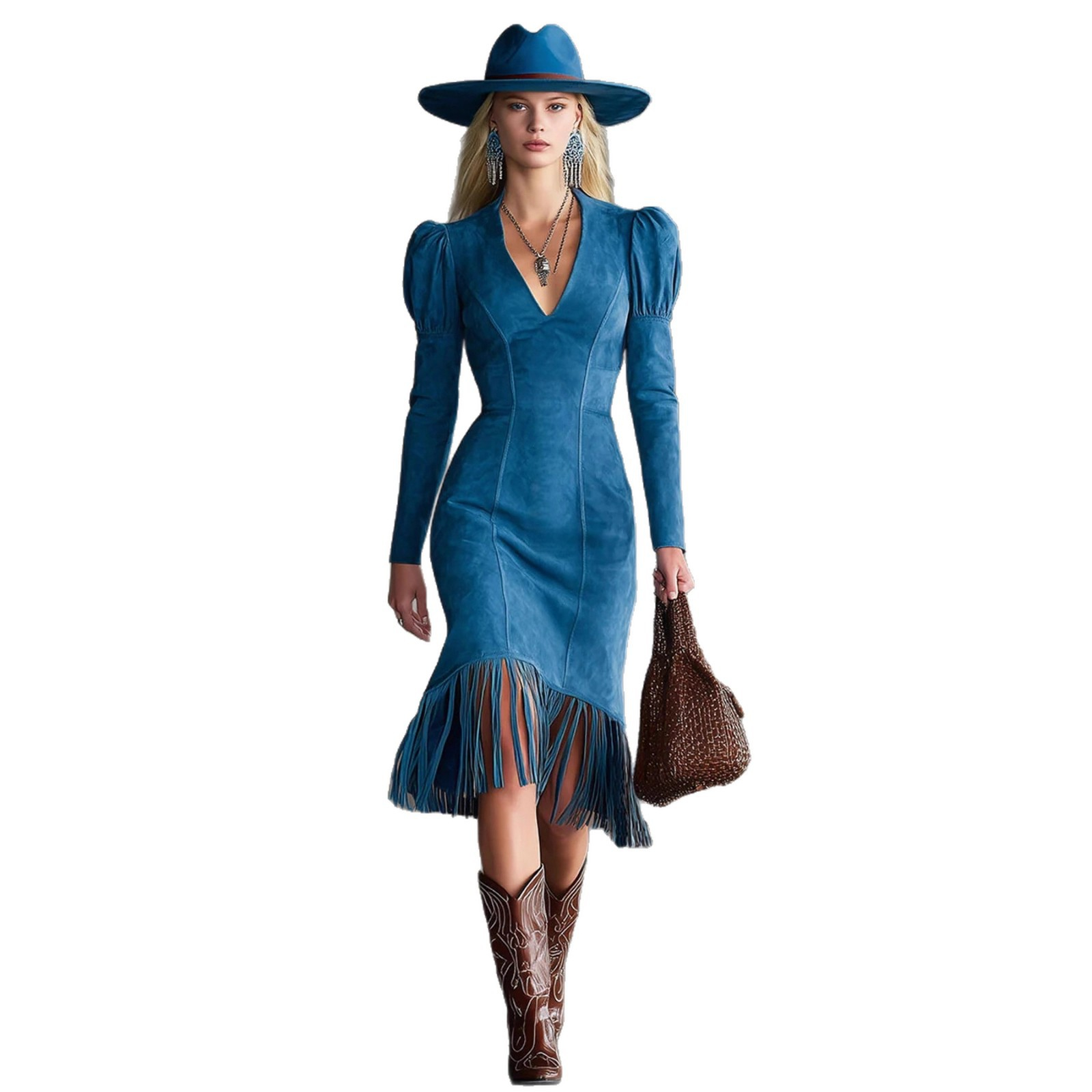 - Retro Suede Fringe Sleeveless Mini Dress