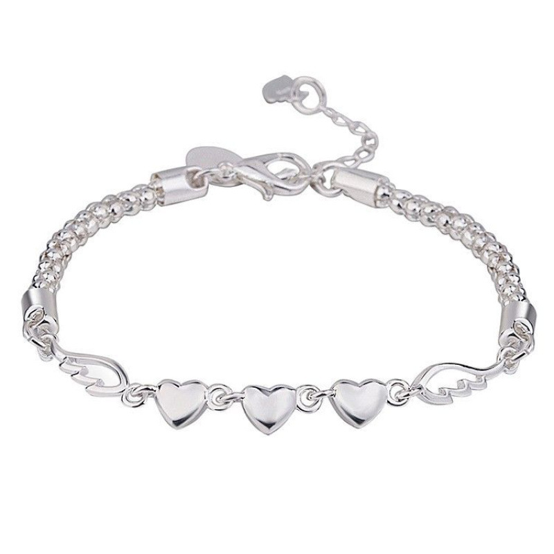 - Stylish Silver-Plated Minimalist Heart-and-Feather Bracelet For Women