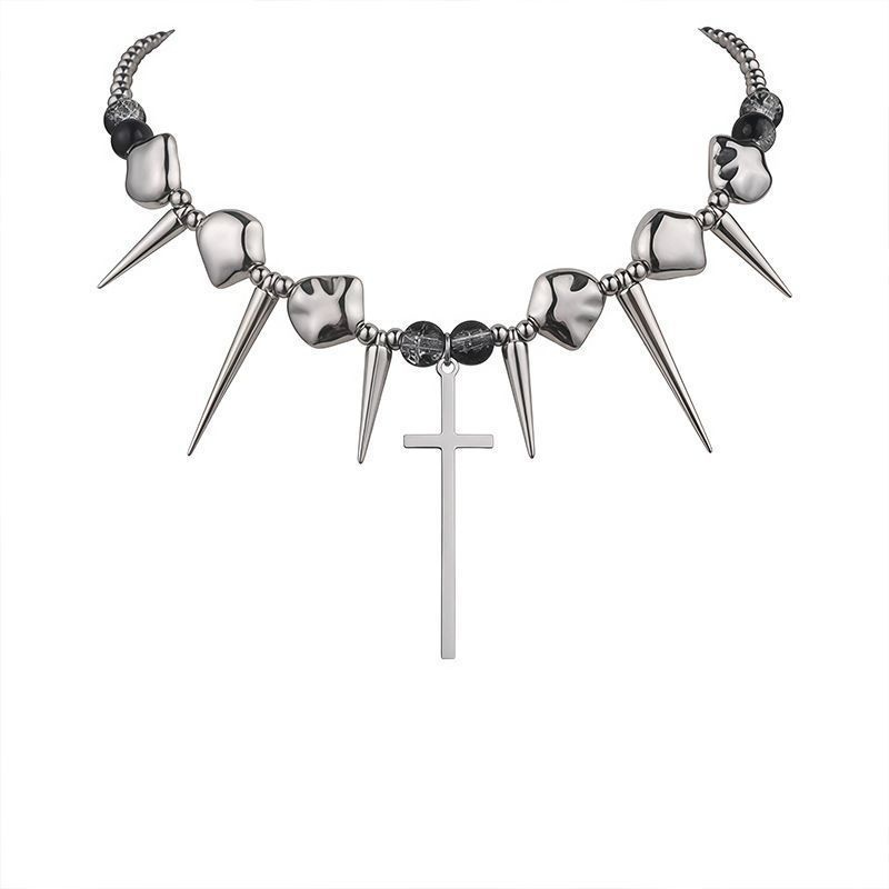 - Exaggerated Punk Necklace With Cross-Shaped Rivets