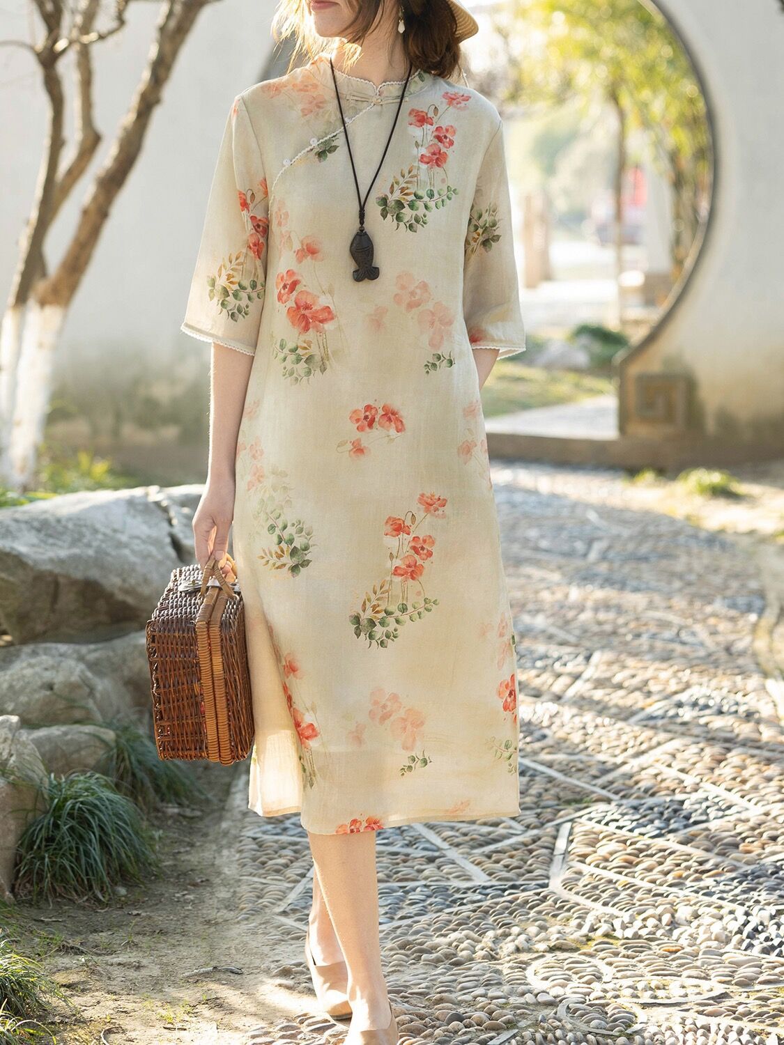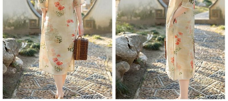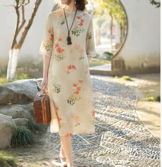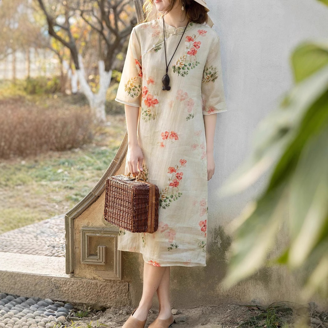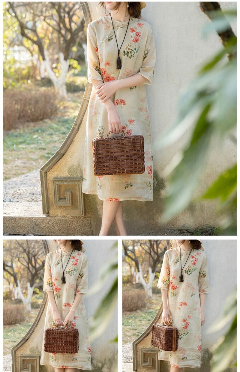 - Women's Cotton And Linen Improved Qipao Dress With Stand Collar
